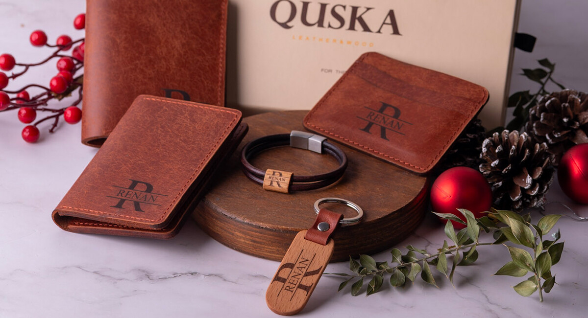 Kişiye Özel İsimli El Yapımı Hakiki Taba Deri Hediyelik 3’lü Set – Grain Slim