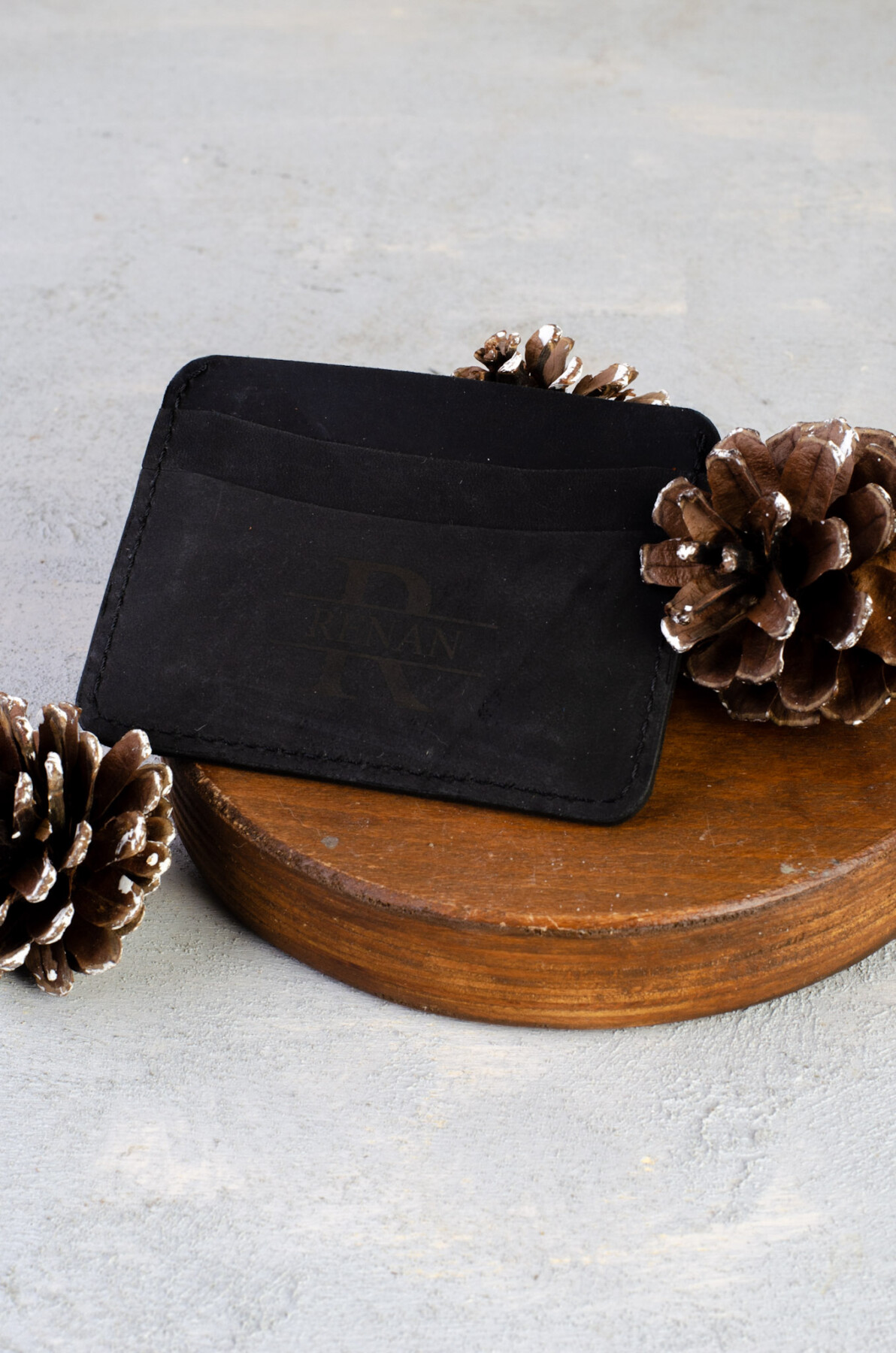Kişiye Özel İsimli El Yapımı Hakiki Siyah Deri Hediyelik 2’li Set – Grain Minimal